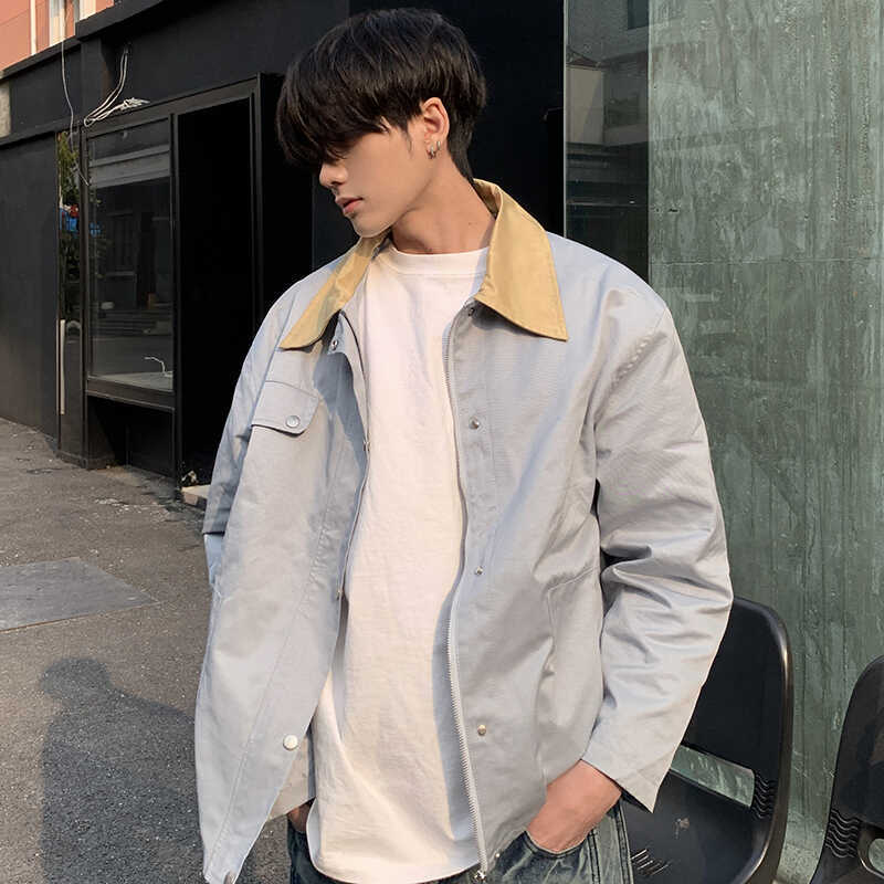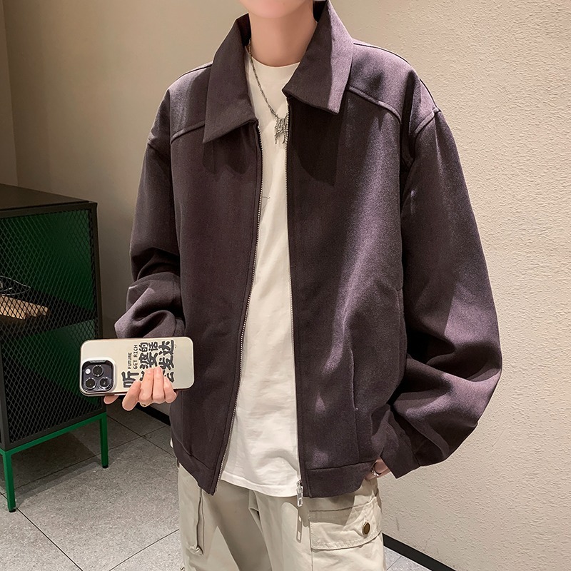 2024新型高級感アメリカジャケット男性cleanfitコート襟付き純色立体裁断レトロ流行