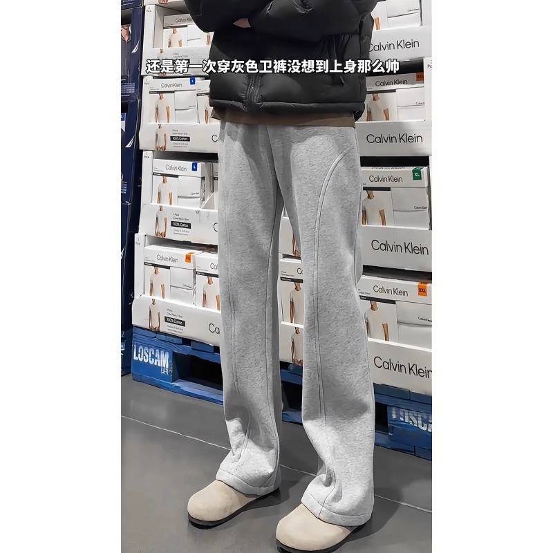 白花の灰色のマイクロラッパのズボンの男性の金の春秋のアメリカの高い街のカーブの刀のズボンは高くてまっすぐな筒の斜めにカジュアルなズボンを切ります。