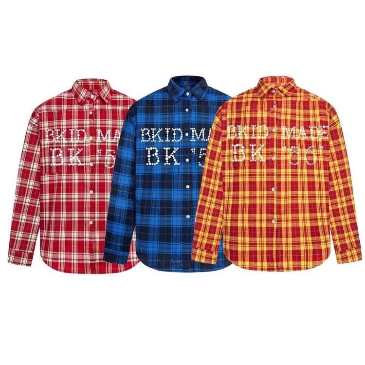 国境を越えたアメリカの釘珠格子シャツ2025春の新しいカップルコートはゆるい日焼け止め上着の男女を着ている