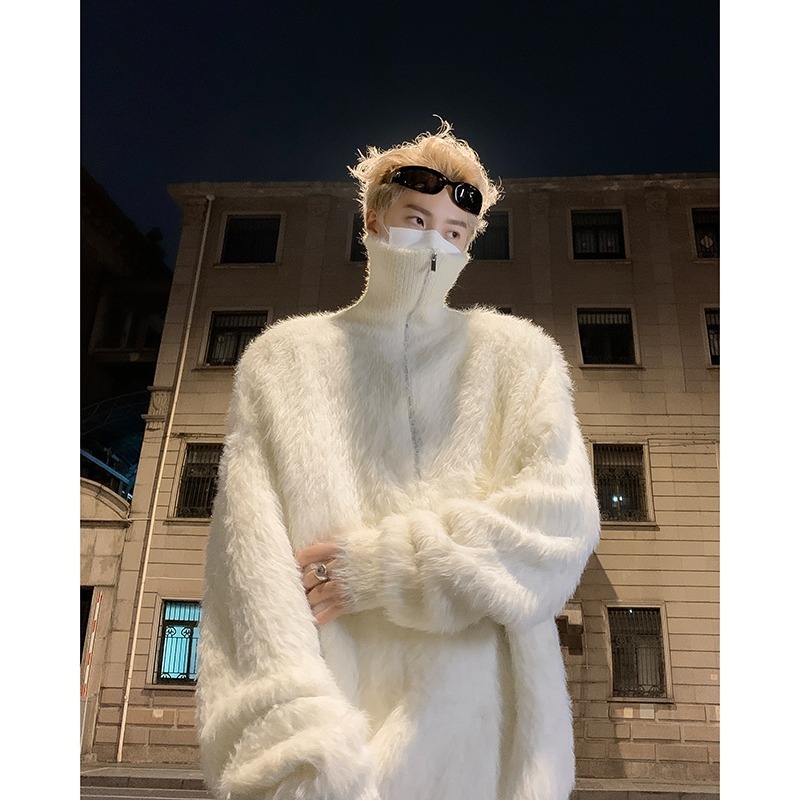 秋冬の柔らかいモチモチの毛のミンクの毛のタートルネックのセーターの男性の香港の風の百合のファッションのブランドの怠惰な風のニットのプルオーバー