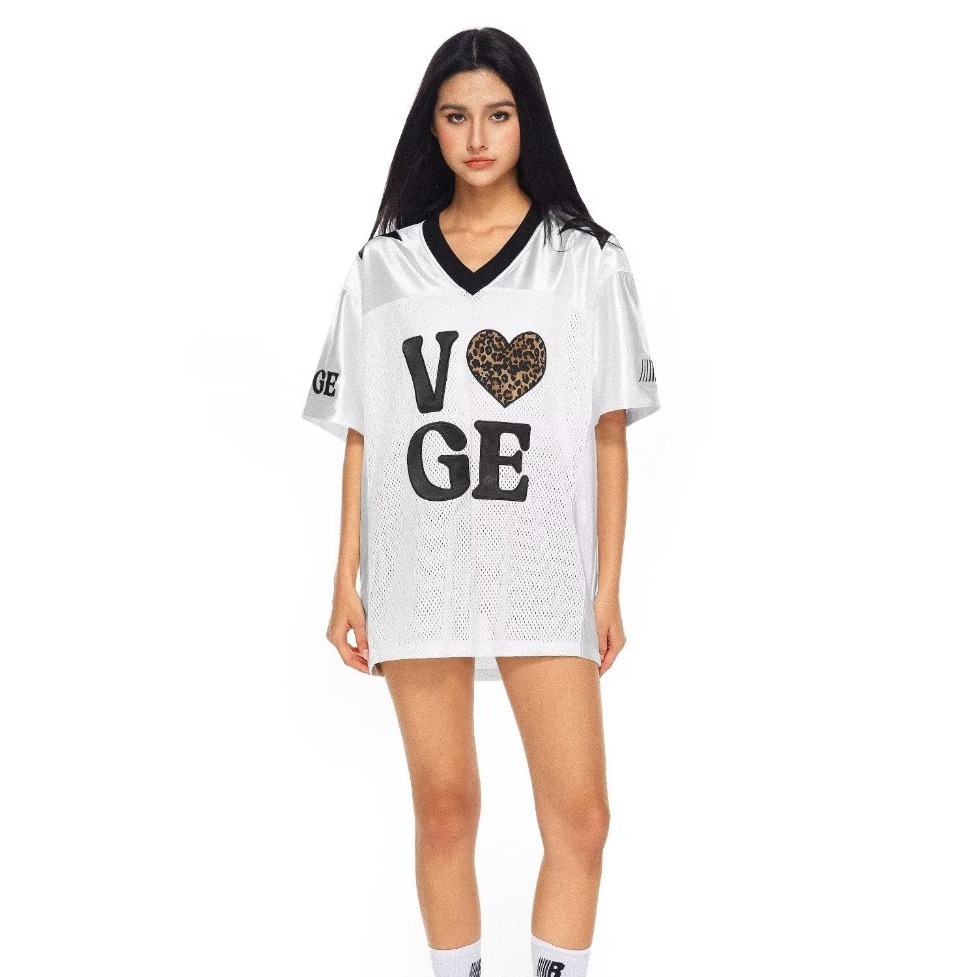 クロスボーダー韓国通気性メッシュ Tシャツジャージ V ネック半袖女性の李孟玲同じスタイルルーズスポーツアメリカン Tシャツ男性