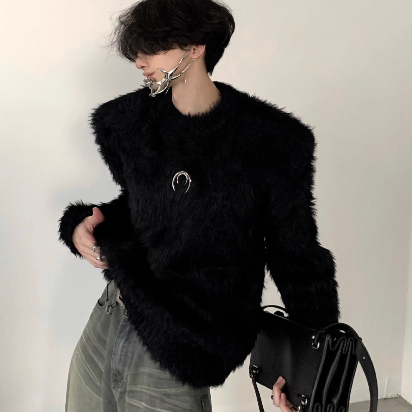 国潮高級雰囲気感セーター男2024秋冬の新型優しい怠惰な丸首ニット上着