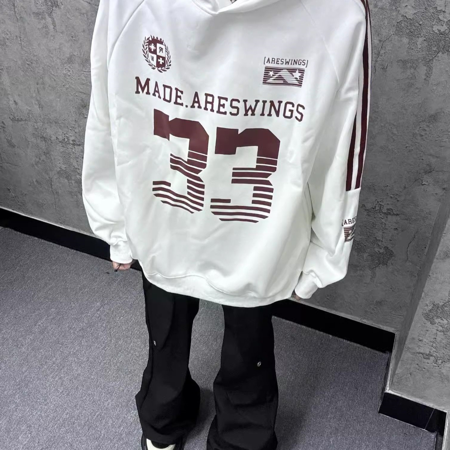 外国貿易のアメリカのユニホームの運動の復古のフードの女性のカップルのゆったりしているレジャーのストライプの数字の上着の卸売り