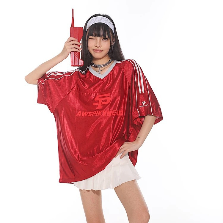 外国貿易のアメリカ式の重いポンドのヒップホップの女性の2025春の新型のvネックのユニフォームのカップルのゆったりしているコートの男性の上着