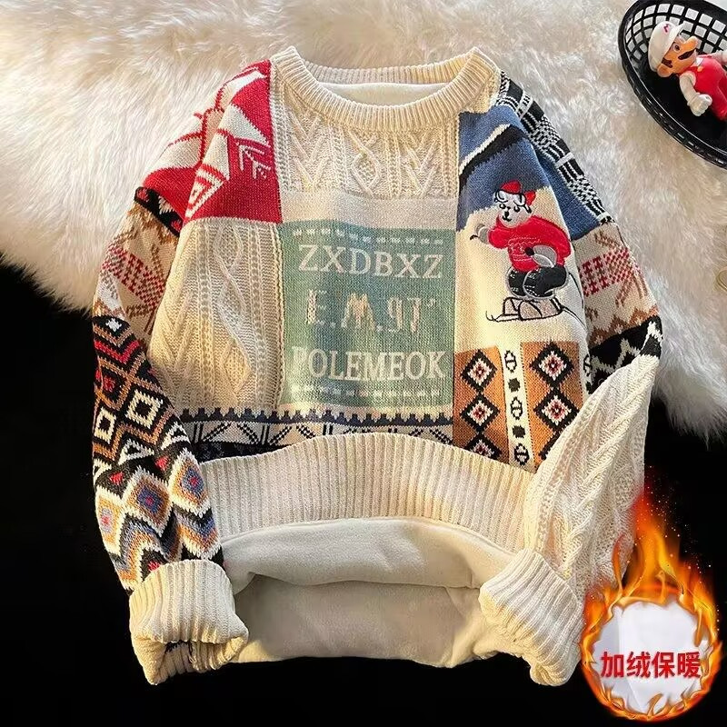 実際に爆発的なベルベットを撮ってセーターを厚くした男の冬の潮牌は怠惰な風クリスマス保温ニットのカップル服のコートを着た