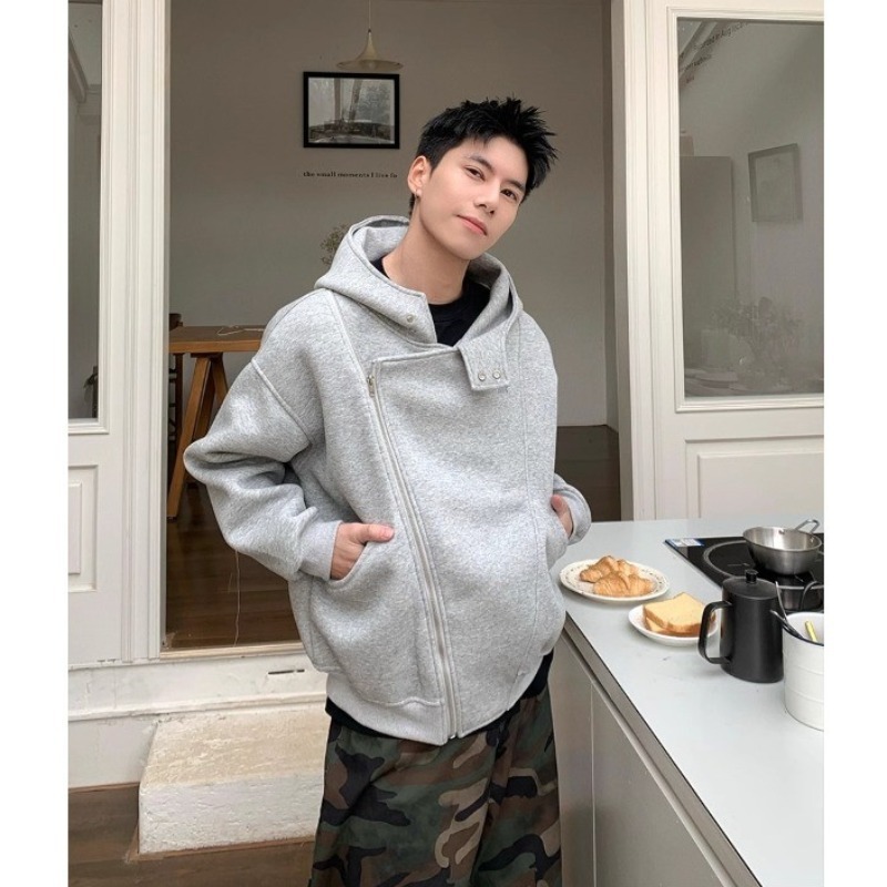 クロスボーダー重ポンドオリジナル不規則帽子付きパーカー男性春秋デザイン感スポーツジャケットカジュアルカーディガンコート