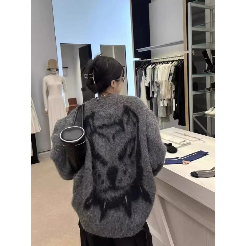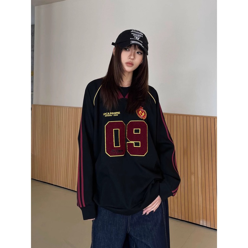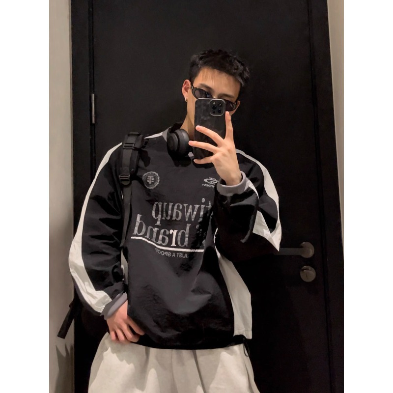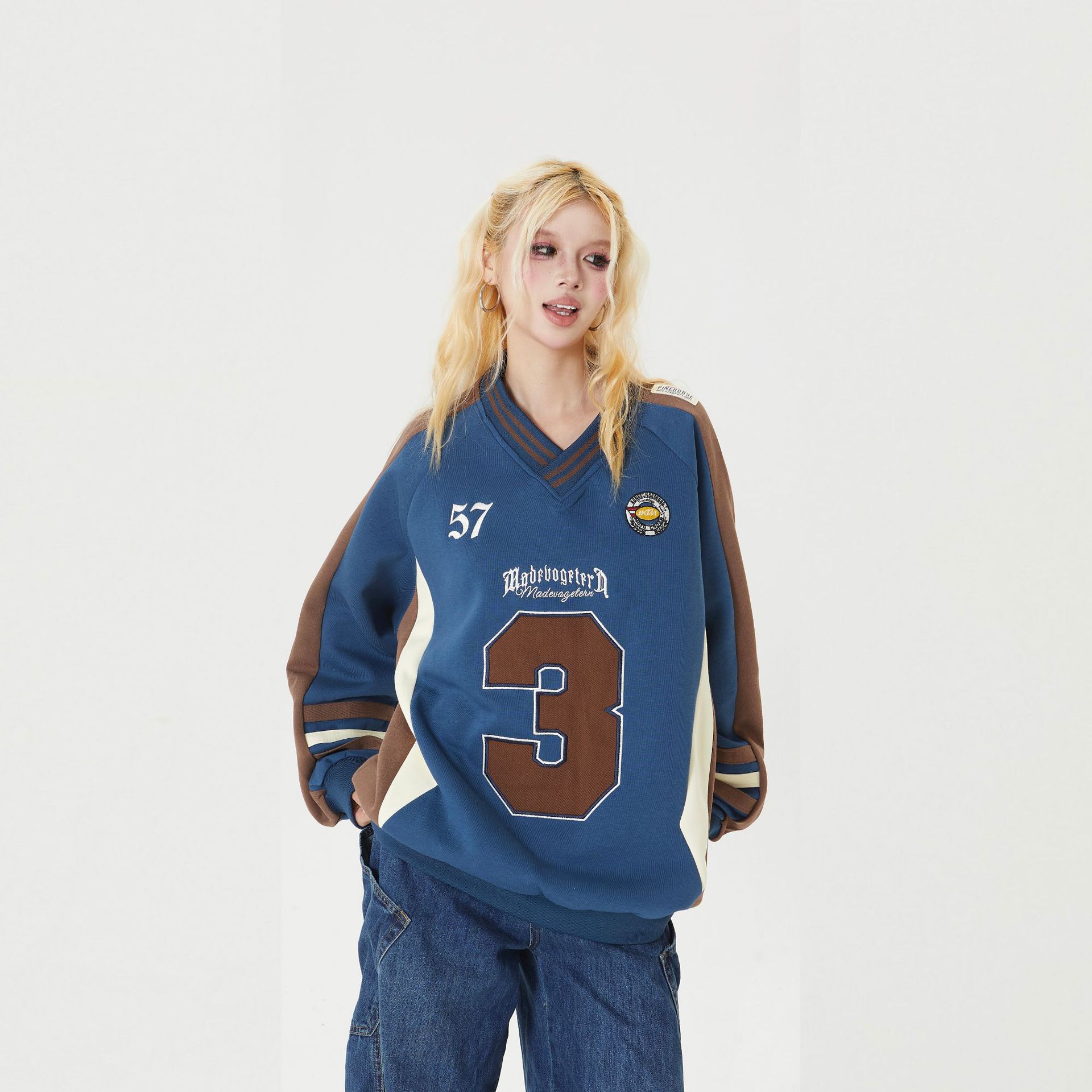 外国貿易アメリカ復古中性2024潮牌バッジ刺繍vネックコート長袖上着