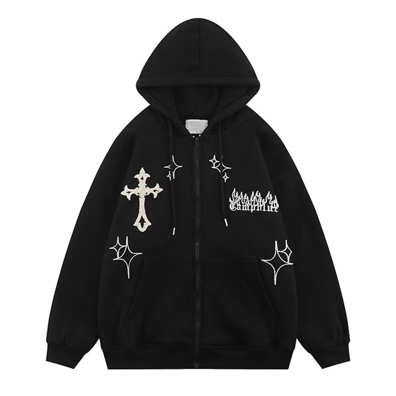 外国貿易卸売りアメリカのレトロなカーディガンの趣味感プリントoversizeカップルの帽子付きカーディガンのコート男