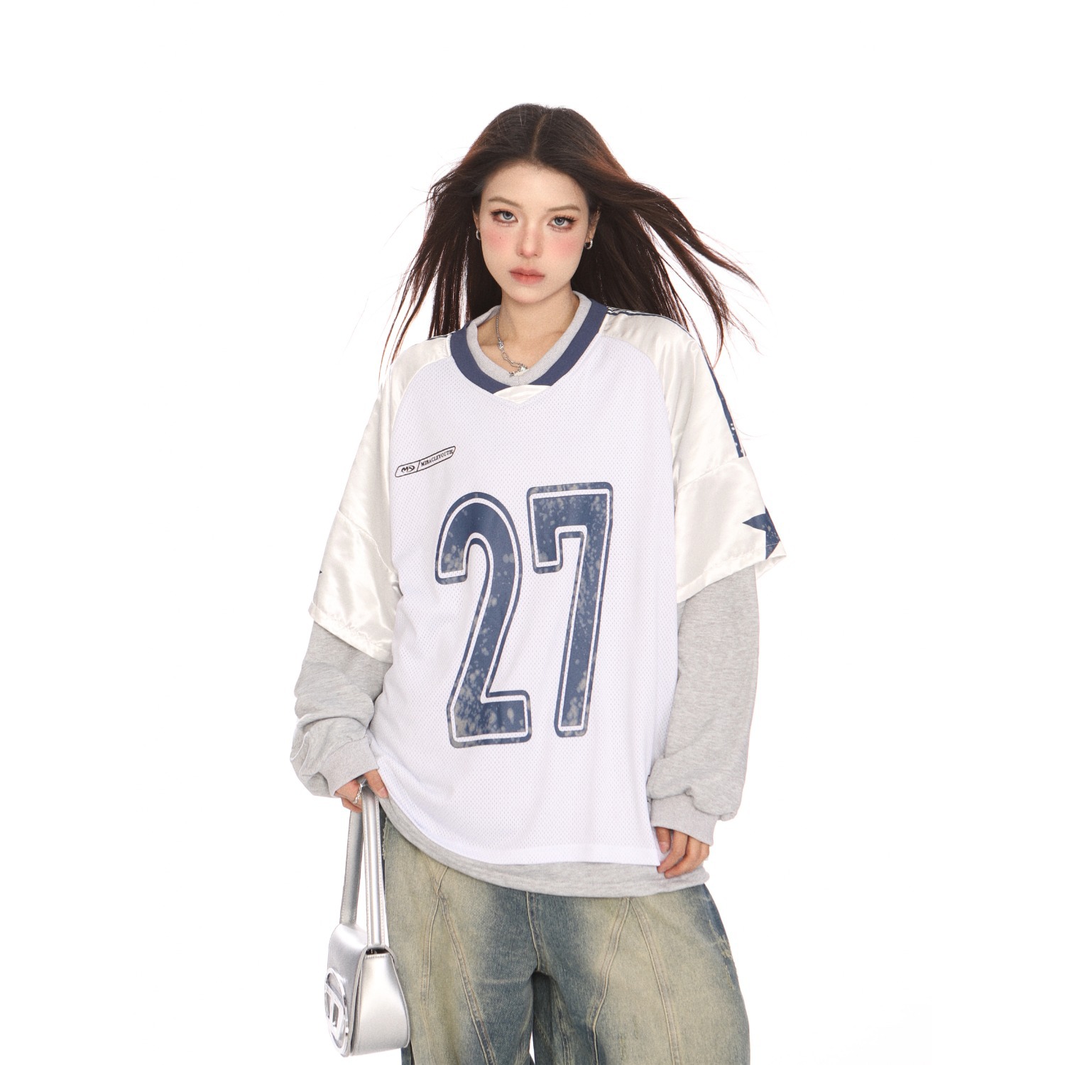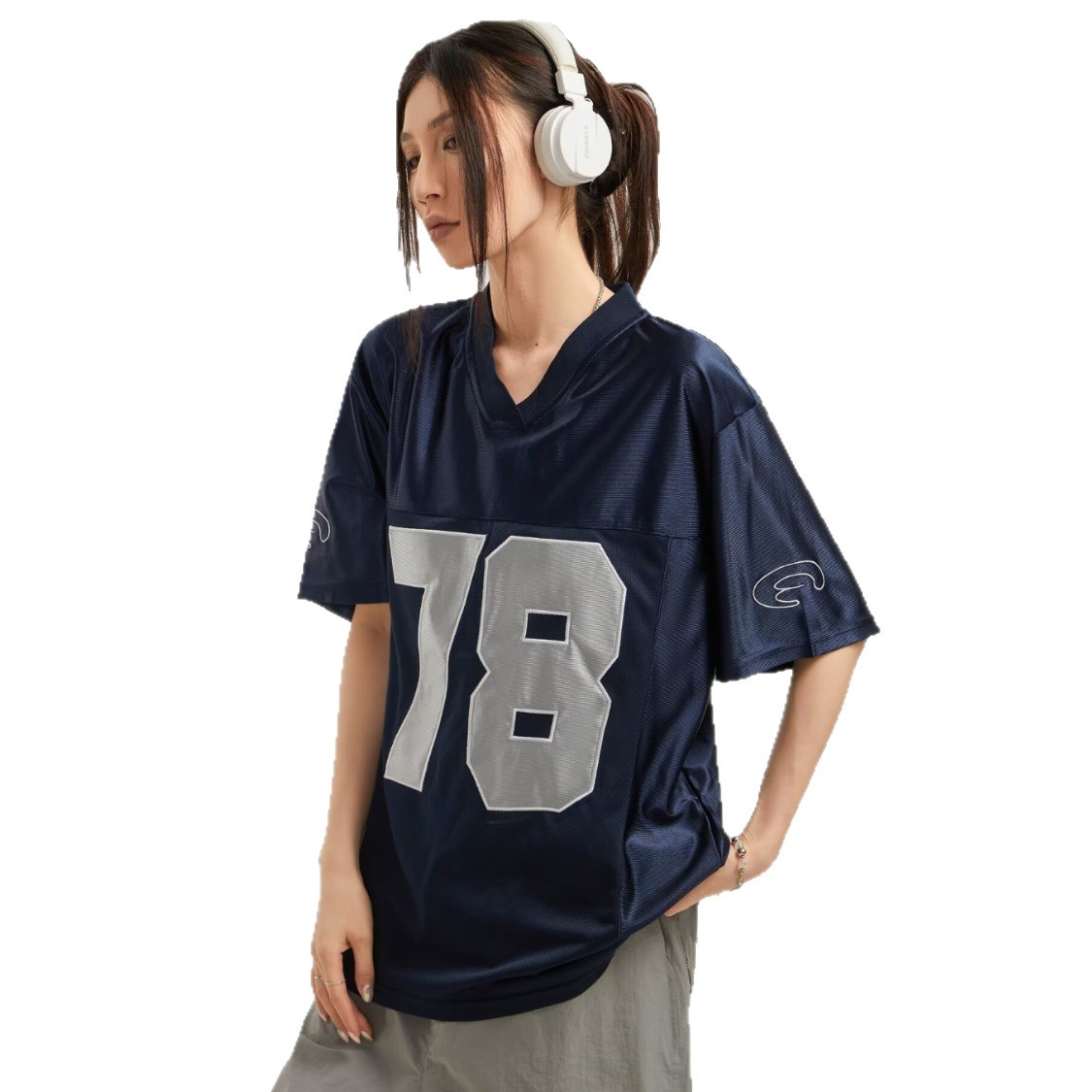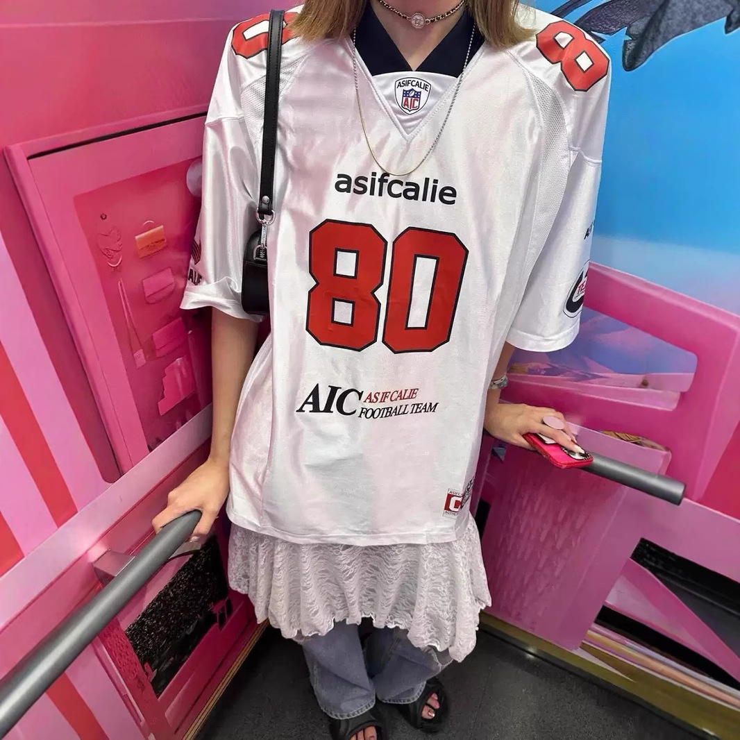 跨境韩国小众潮牌金玟池同款拼接球衣休闲宽松短袖数字球服男女