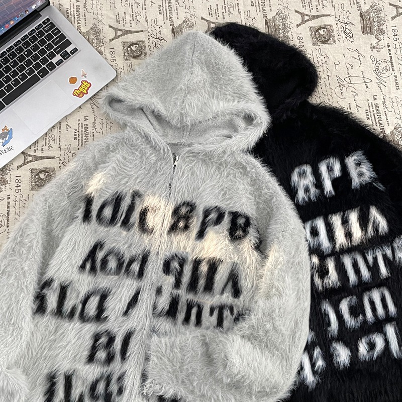 アメリカのアルファベットの怠惰なセーターのカーディガンの男性の高い街のファスナーのミンクの毛の毛のカップルのゆるいニットのコート