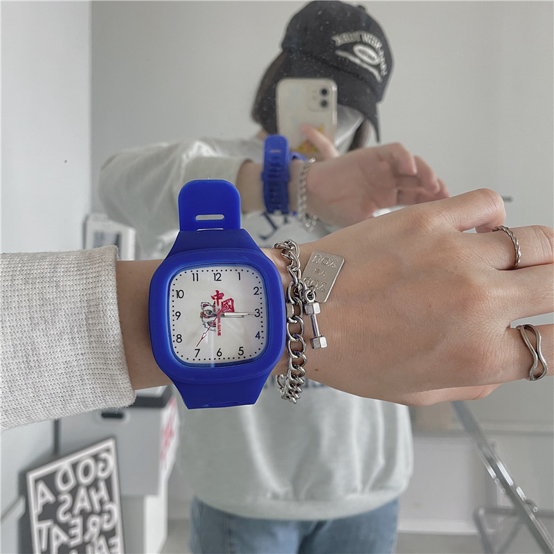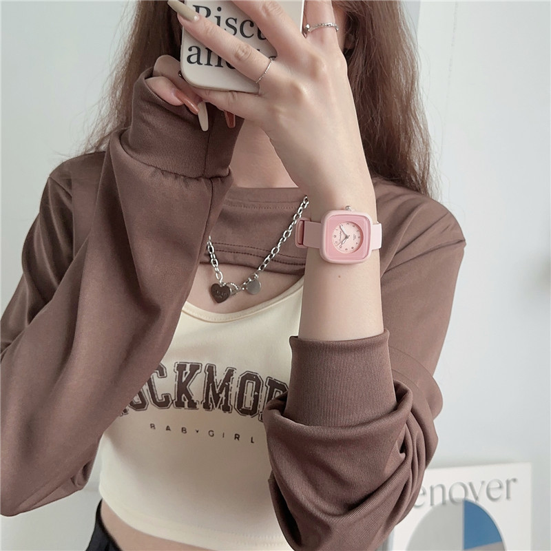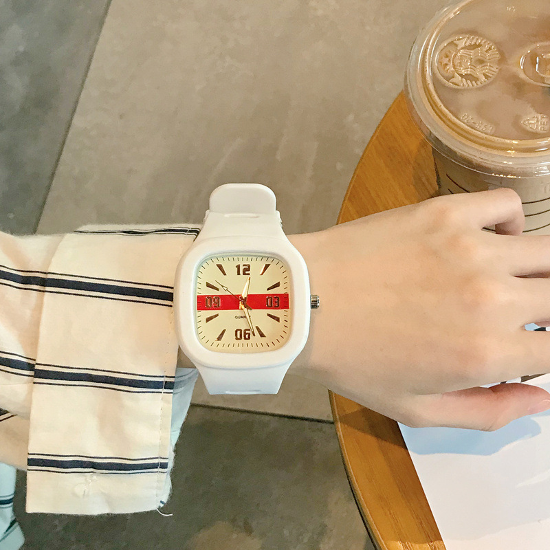 ドーパミン かわいい 中学生 青春 キャンパス インス スタイル スクエア シリコン 腕時計 男女兼用 韓国版 シンプル 防水