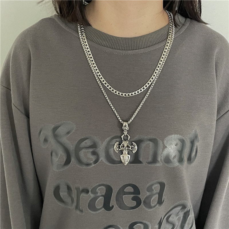 男性と女性のためのインネックレス、インターネットセレブ、ヒップホップ、トレンディなブランド、多用途のチタン鋼ペンダントデザイン、セーター鎖骨チェーンアクセサリー