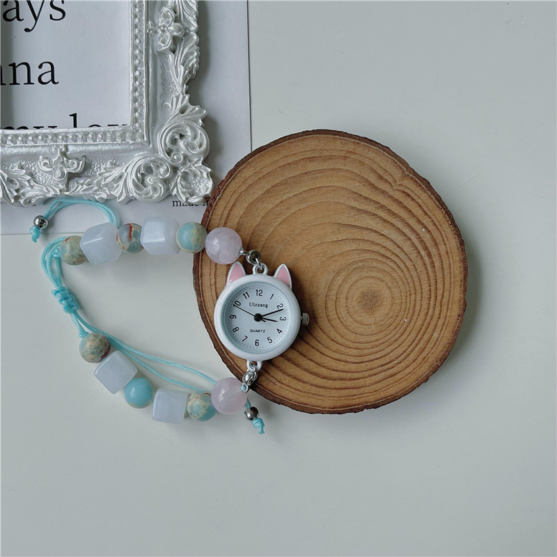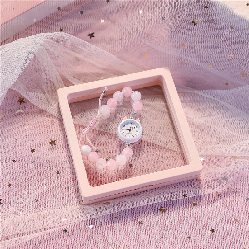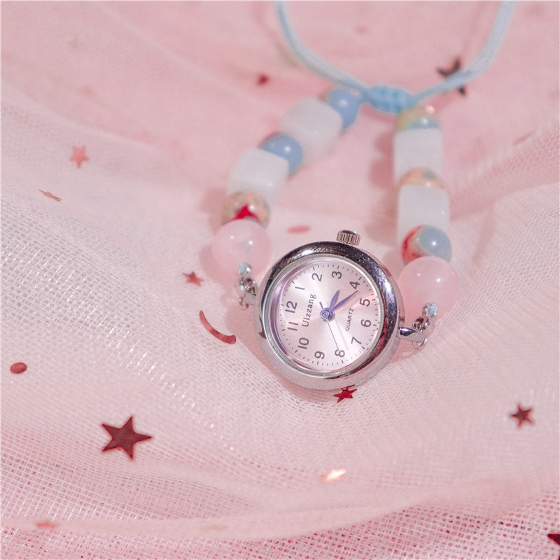 ガーリーピンクのコンパクトビーズブレスレットウォッチ中国風の小さな新鮮なイン高価値学生キャンパスホワイト