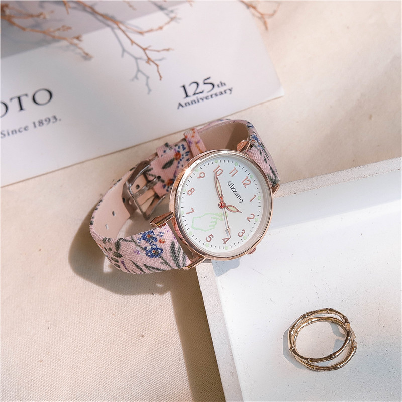 女子学生、親友、女の子向けの見栄えの良い新しいネットセレブの花柄時計、かわいい、森風、シンプルな気質、夜光