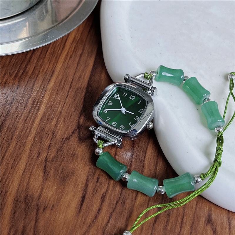 女子学生向けの緑の竹ブレスレットウォッチ、韓国版、シンプルな気質、ニッチな軽い高級感、レトロな森風文学的な小さな文字盤