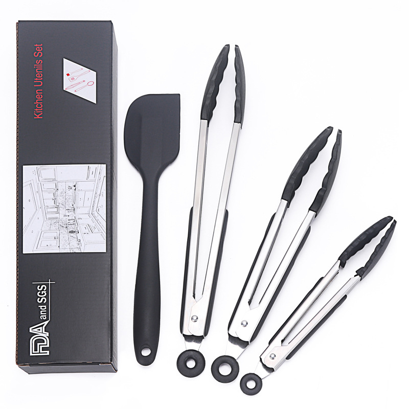 シリコン食品クリップ調理焙煎用具4点セットキッチン食品クリップスクレーパー7インチ9インチ12インチ