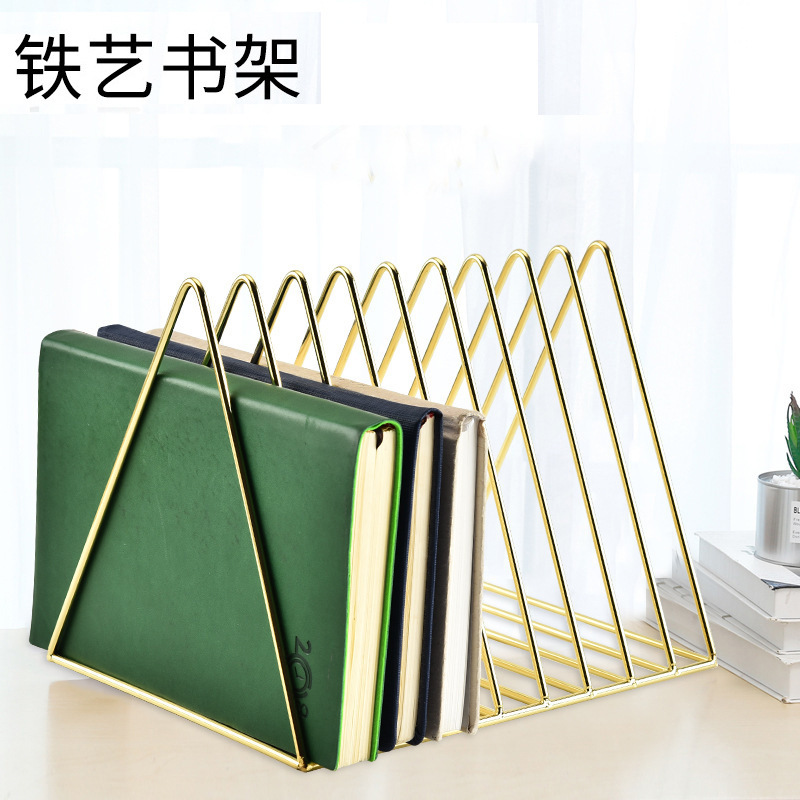 三角シンプル鉄芸デスクトップ装飾収納棚本棚北欧鉄芸小本棚ファイル書籍収納棚