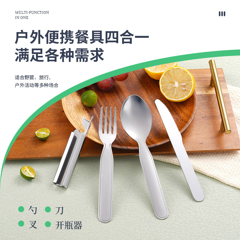 ホテルレストラン家庭用長柄ステンレスナイフフォークスプーン4点セット栓抜き缶器ステンレス食器セット
