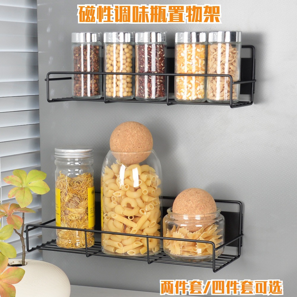 穴を開けない家庭用香料棚多機能鉄芸物棚厨房調味料棚冷蔵庫側掛磁気吸引収納棚