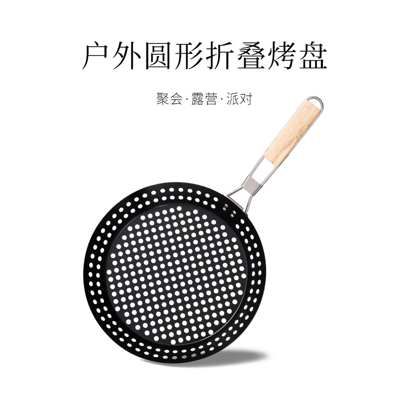 ステンレスの透かし彫りの屋外のバーベキュー皿BBQの円形はバーベキュー皿にくっつかないで、折り畳み可能な平底の焼肉皿です。