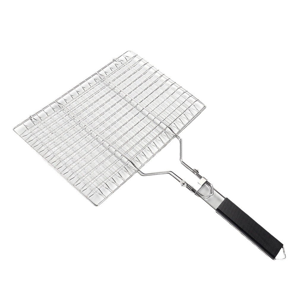 屋外折り畳みバーベキューネットバーベキューツールステンレス木柄食べ物クリップ430焼き魚クリップ取り外し可能bbqグリルネット