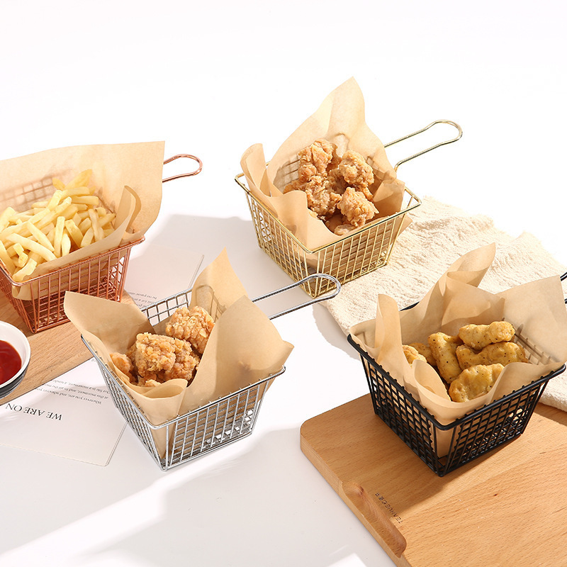 アマゾンの爆発ミニフライドブルー食器フライドポテトかごフライドチキン軽食かごステンレス枠ホテルレストラン