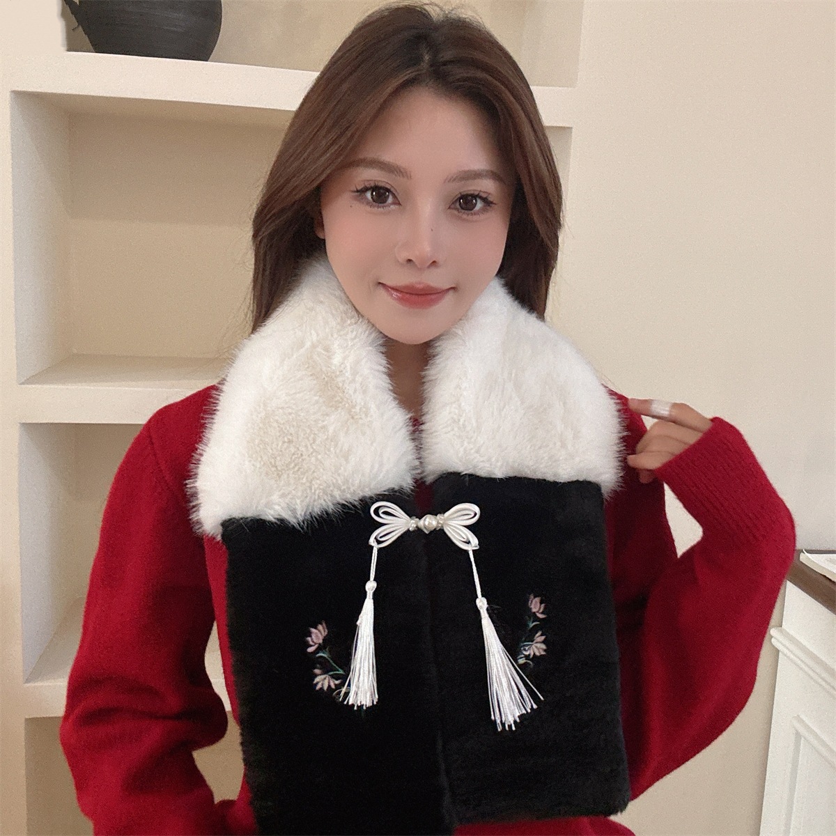2024刺繍のぬいぐるみのマフラーの女性秋冬のベルベットは、新しい韓国版のカップルの学生の保温マフラーを厚くした