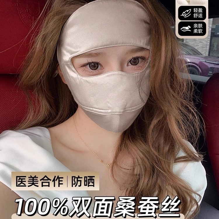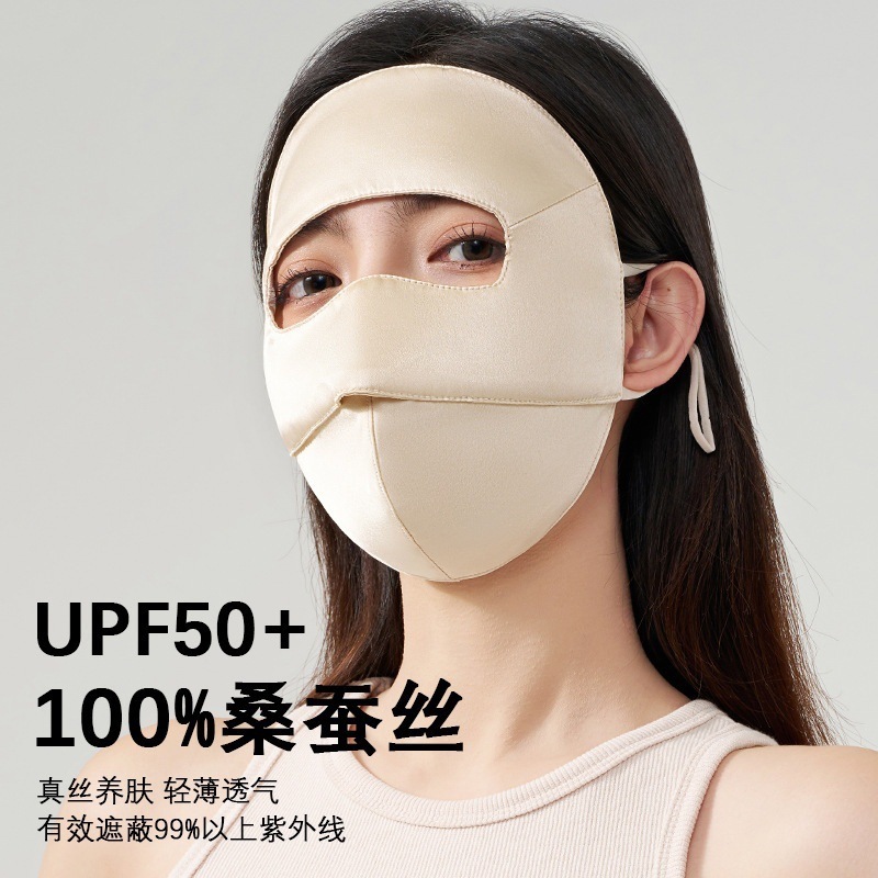 2025シルクマスク桑シルク紫外線防止全顔女性高顔マスク日焼け止めマスク敏感肌日焼け止め