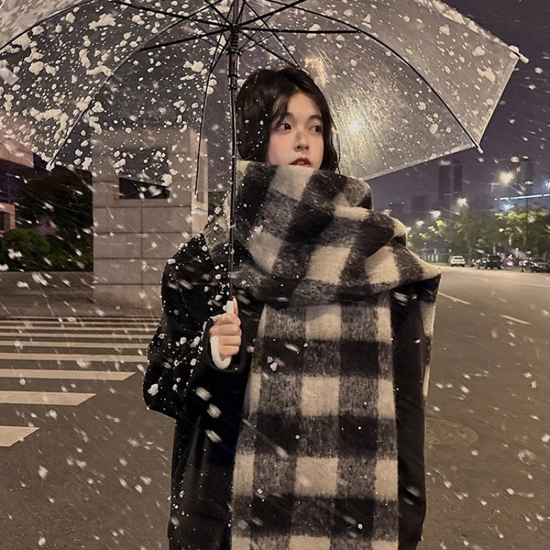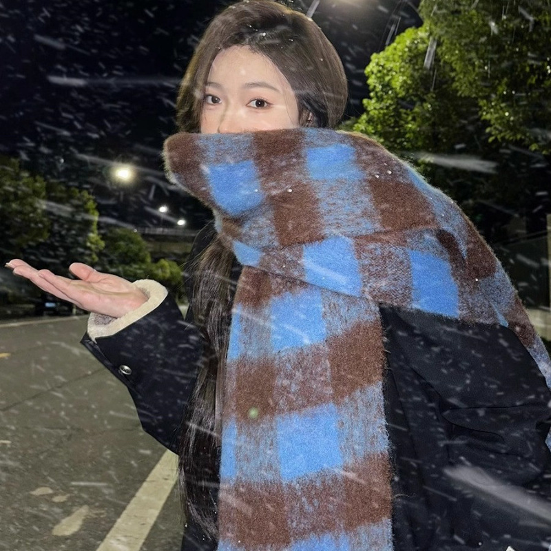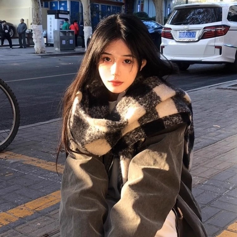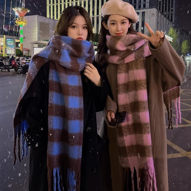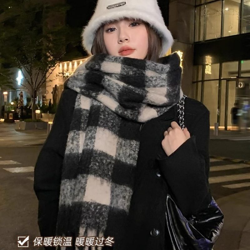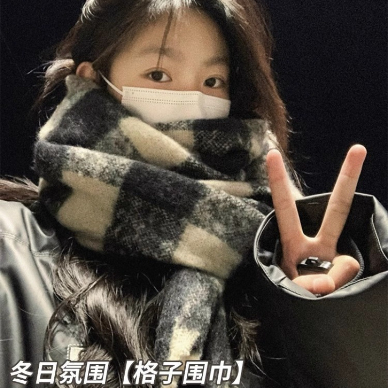 2024冬の新型格子マフラー女性の高級感がかわいいストール学生カップルの保温マフラー卸売り