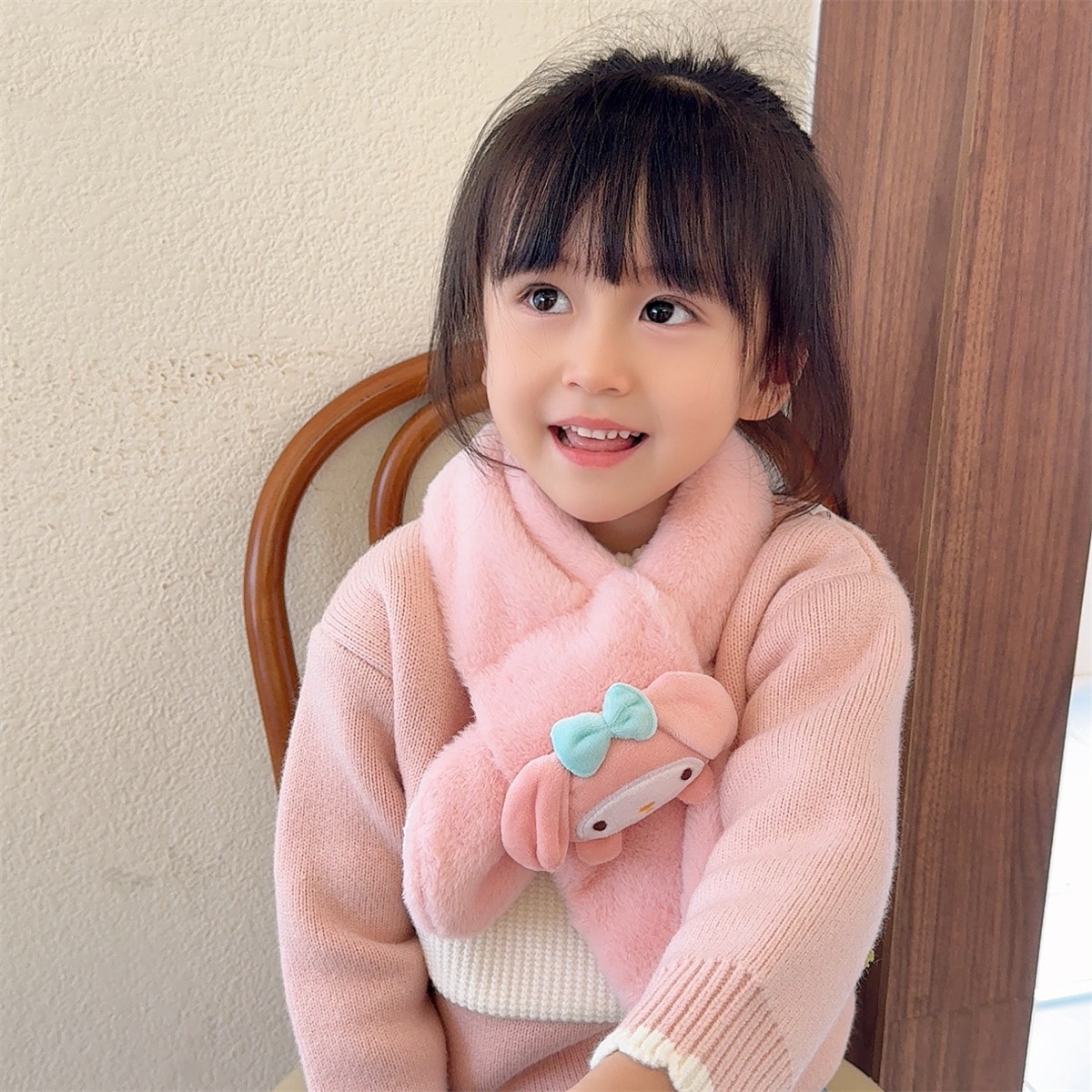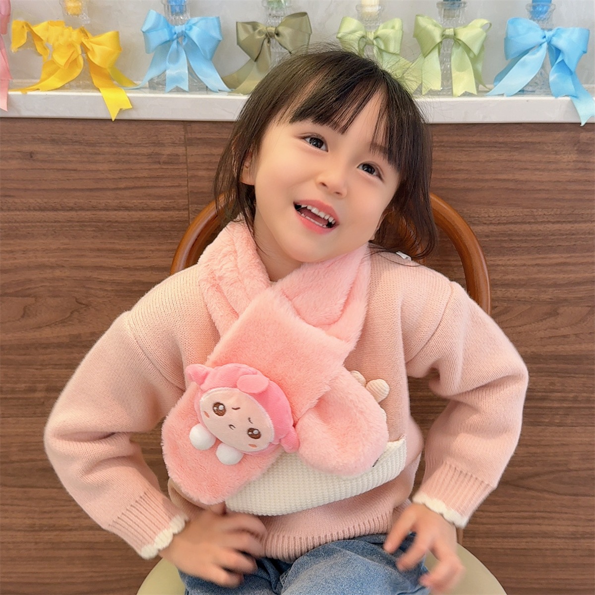 2024秋冬かわいいマフラー子供のぬいぐるみが首を囲んでいる赤ちゃんは防風を厚くしてウサギの毛を真似て親子で首を温める