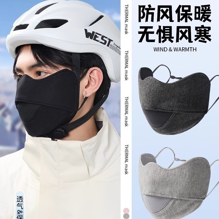 保温マスク冬防寒さん東北冬黒厚手男性モデル高颜値保護目尻騎行マスク