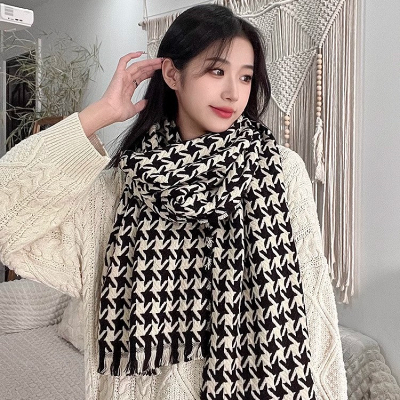 2025秋冬格子柄スカーフ レディース 美白効果 韓国風雰囲気 タッセル付き 首元保護 防風防寒ネックウォーマー メンズ卸売