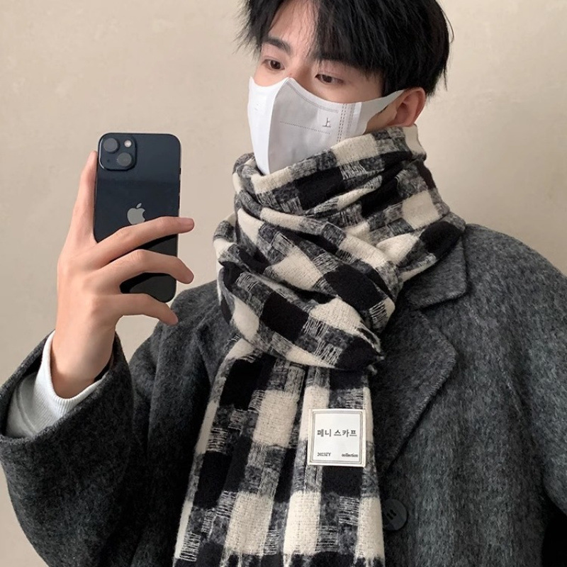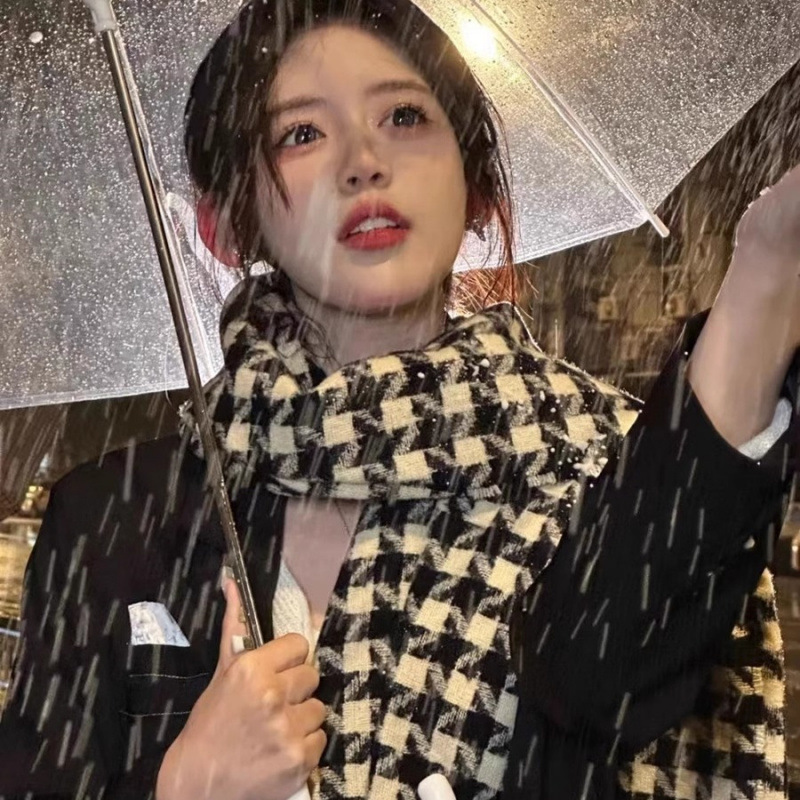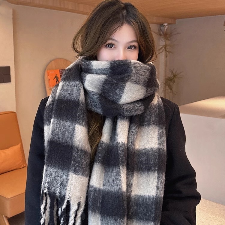 2024冬の新型保温マフラー韓系百合学生白黒格子マフラーネット赤防風防寒卸売り