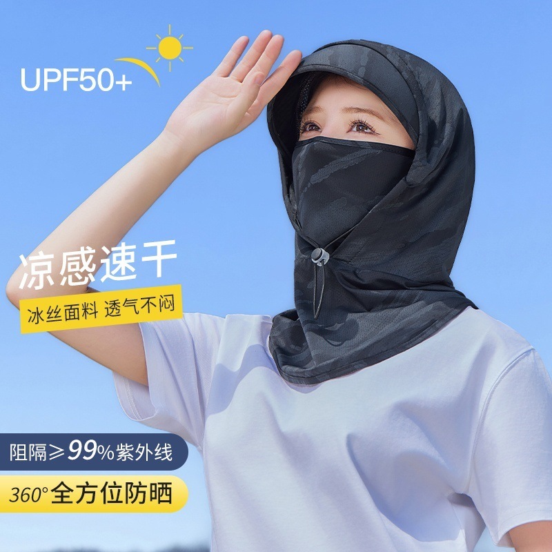 女性用日焼け止めマスク、一体型ネックプロテクター、フルフェイスUV防止ヘルメット、サイクリングフード、男性用アイスシルクネックウォーマー