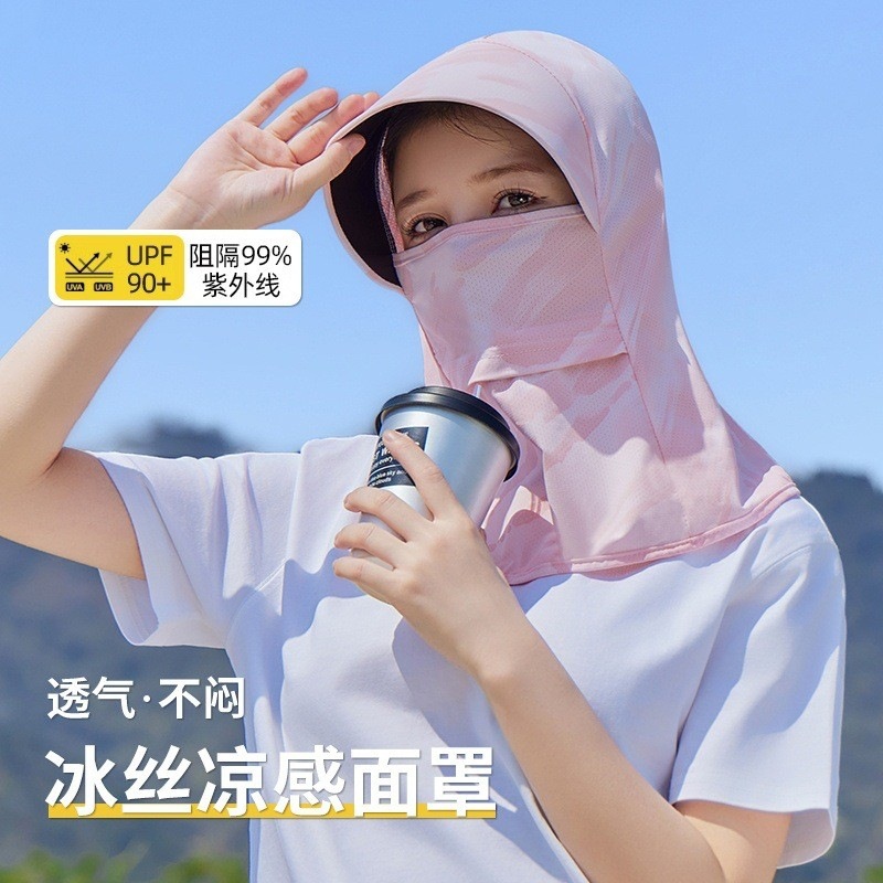 女性用日焼け止めマスク夏フルフェイス 2025 新しいアイスシルク抗 UV 運転とサイクリングネックプロテクターオールインワン日焼け止め帽子