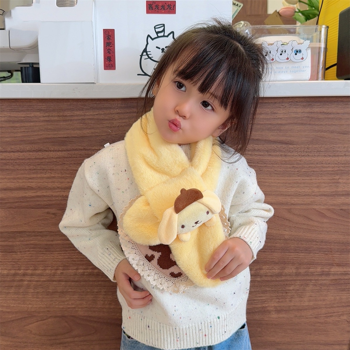 2025年子供用スカーフ冬の新作女の子用可愛いぬいぐるみスカーフ暖かいイミテーションラビットファー男の子用漫画風毛皮スカーフ
