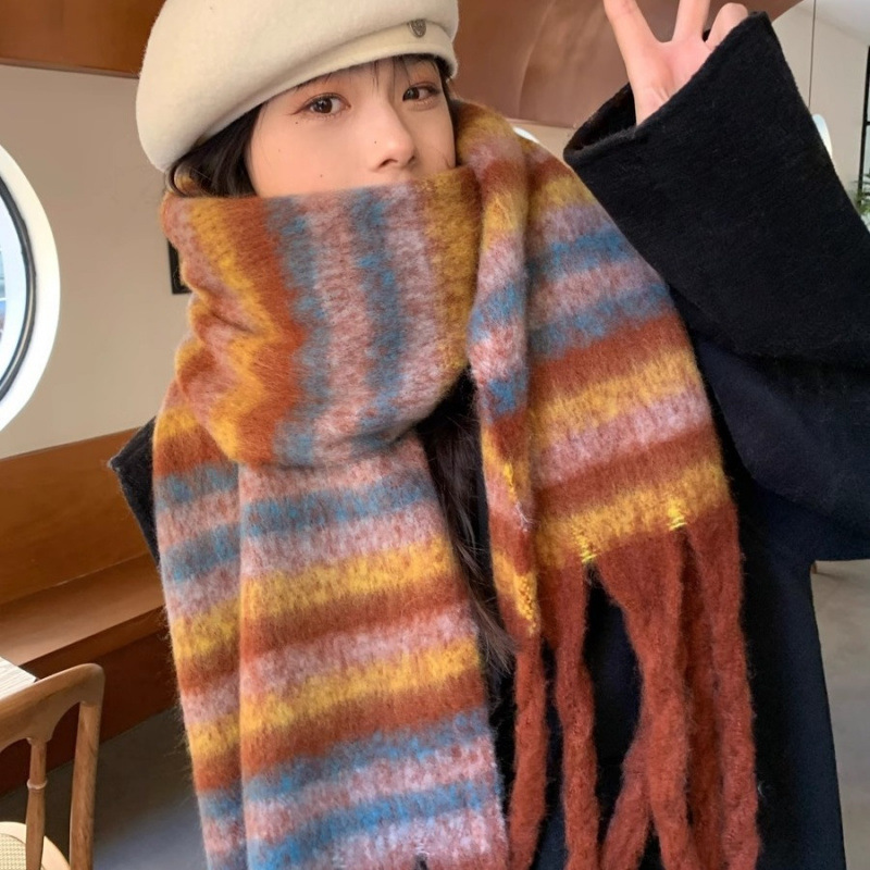 2024新型カップルマフラー女性秋冬レトロ厚手の英倫風ストール高級感雰囲気保温マフラー