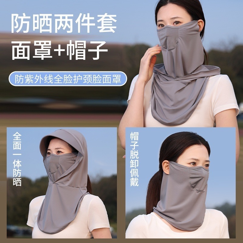 2025夏の日焼け止めマスク女性紫外線防止氷糸顔ジニ通気性乗馬全顔帽子マスク一体