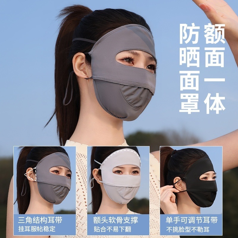 2025全顔つば日焼け止めマスク紫外線防止氷糸夏の薄い通気性保護目尻日よけマスク卸売り