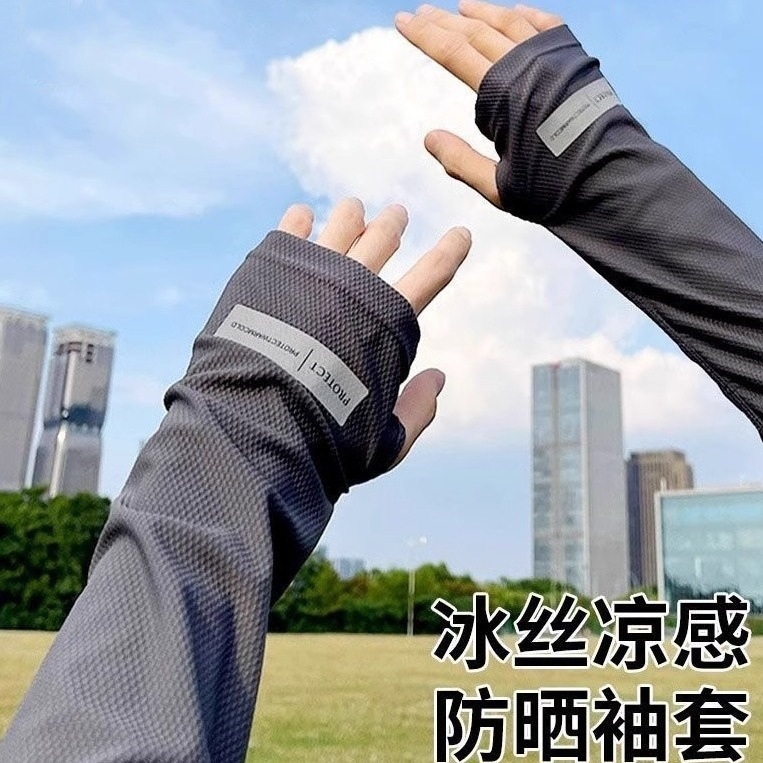 氷の袖の夏の日焼け止めの女性の男性の袖のカバーの紫外線の氷の糸の腕のカバーの袖の薄いタイプの騎乗の手袋は肘を保護します