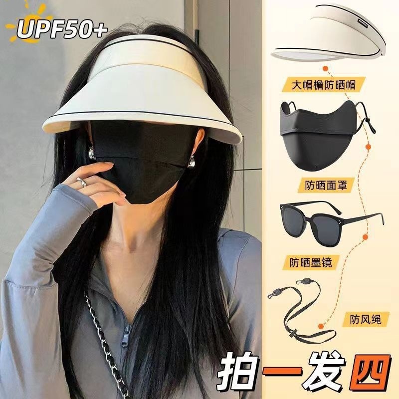 2025夏の新型空頂日焼け止め帽子女性紫外線防止帽子マスクマスク太陽帽子男性卸売り