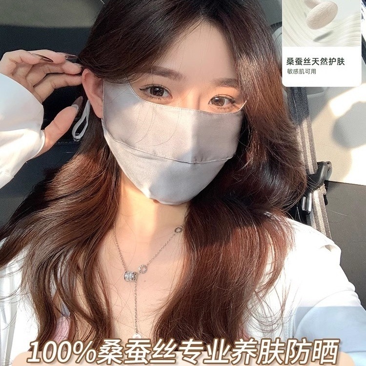 目尻保護日焼け止め口マスク運転マスク防塵防風防止紫外線防止ブルーライト顔100% 桑シルク