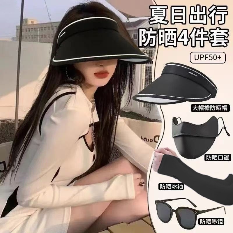 2025夏の日焼け止め帽子セット女性紫外線防止顔屋外自転車の大きなつばの空の日よけ帽子卸売り