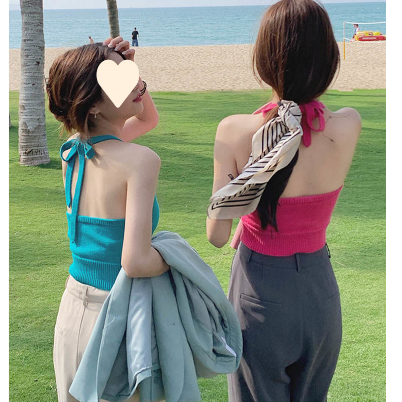 ホットガールのチューブトップと美しいバックトップの女性のための小さなサスペンダーアウターウェア夏デザインレースアップホルターネックニットボトムベスト