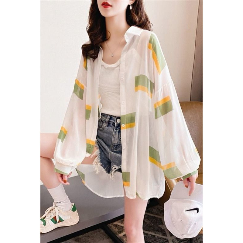女性用日焼け止め服、薄手の夏のネットセレブミドル丈長袖シャツ、韓国風ゆったり万能トップス、ジャケット、トレンドクロスボーダー
