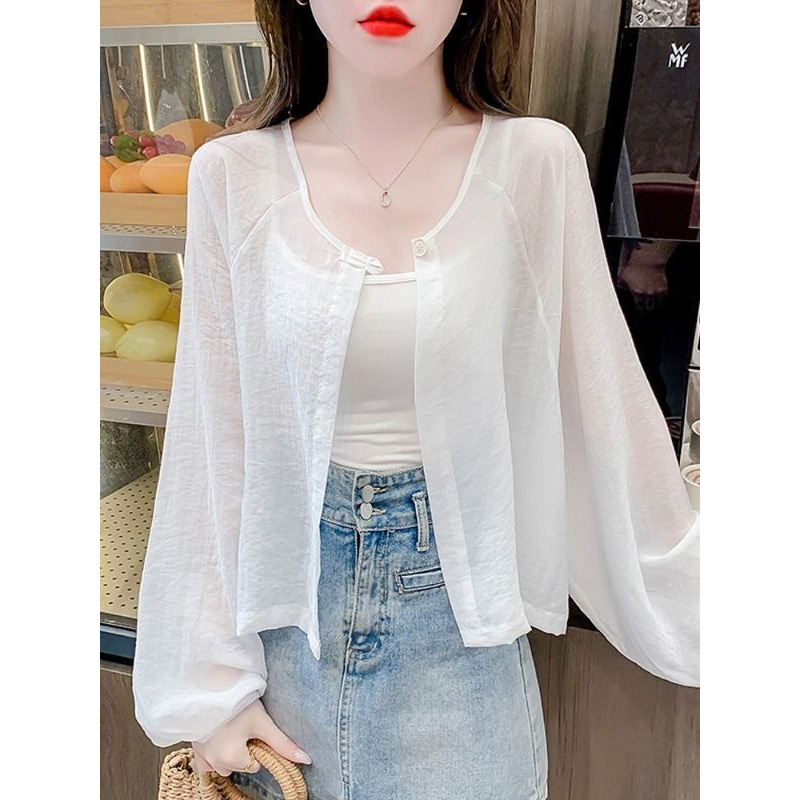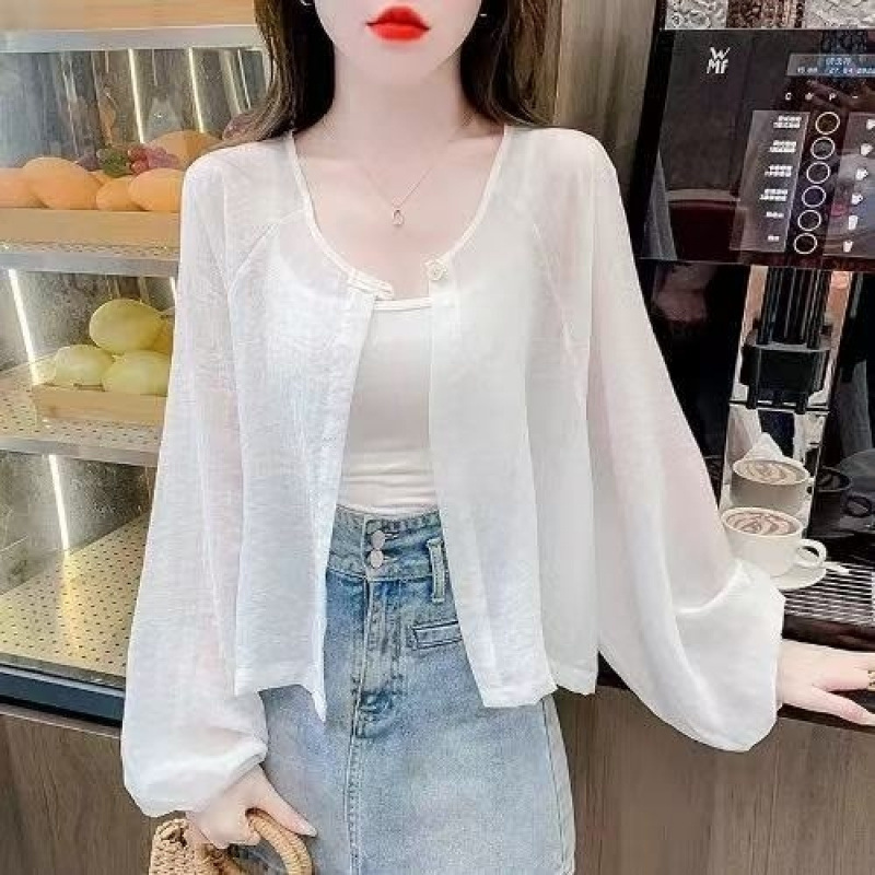 ソリッドカラーの薄いテンセル日焼け止めジャケット女性のための夏 2025 ルーズスリムマイクロシースルーカーディガントップストレートヘア
