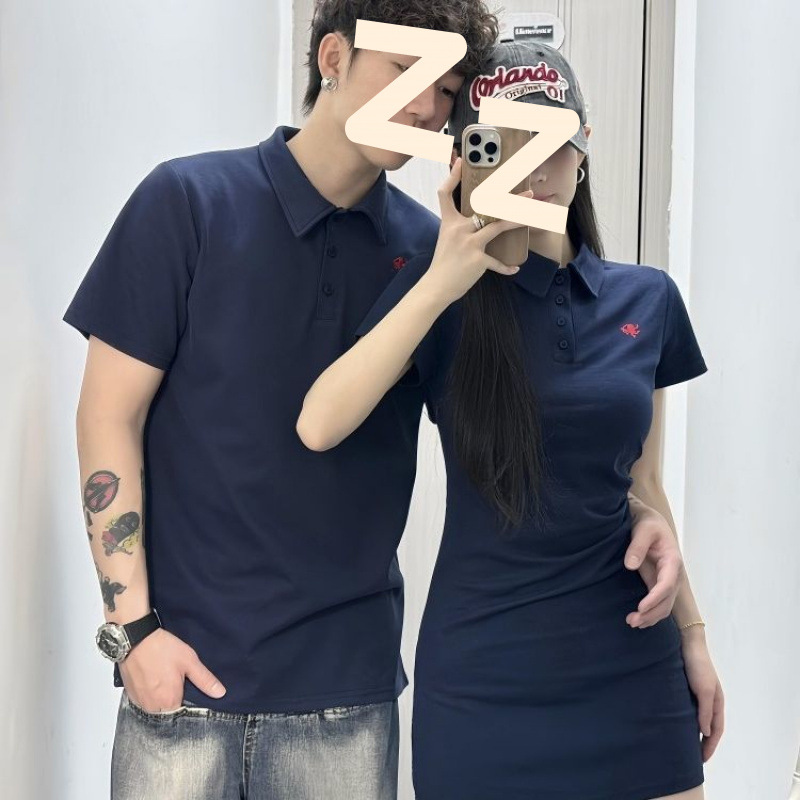 綿高級カップルサマードレス、トレンドブランド半袖ポロシャツ、ミドル丈ワンピース、ツーピースセット