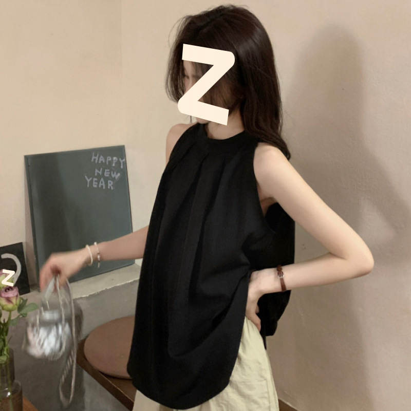 女性用ブラックノースリーブホルタートップ、夏フレンチシックオフショルダードールシャツ、キャミソール、ミュウスタイルシャツ