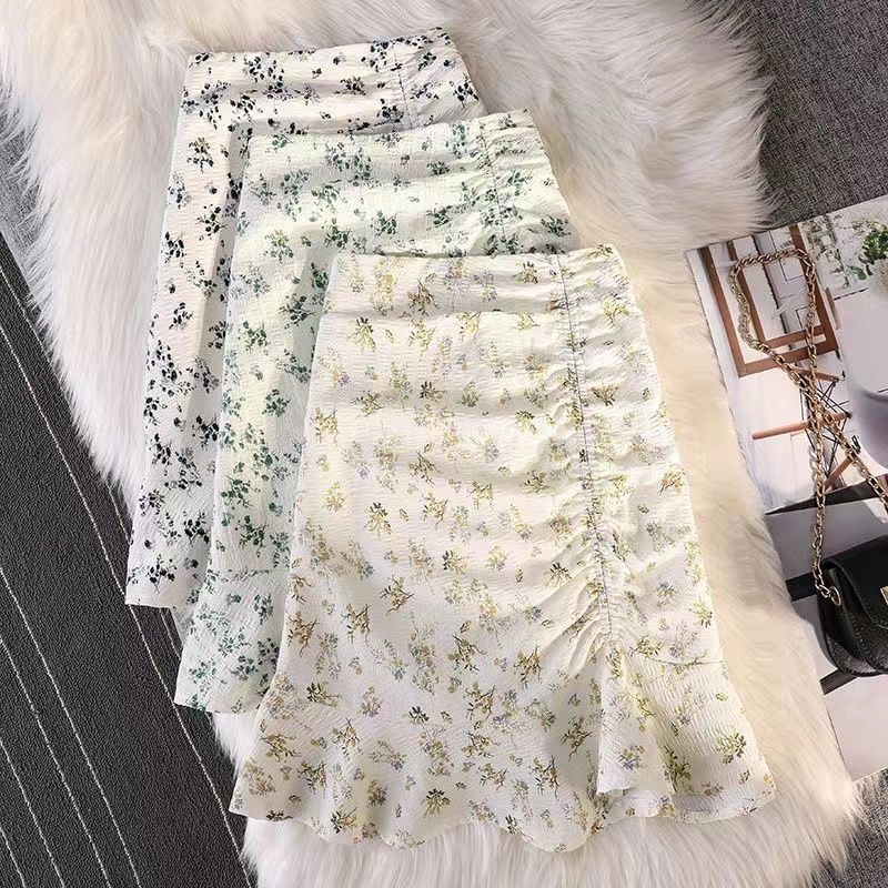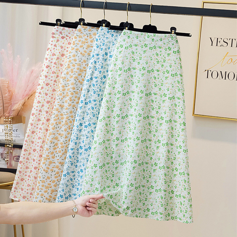 花柄スカートレディース夏新作ハイウエストAラインスカートおしゃれスリム小柄シフォンスカート万能妖精スカート