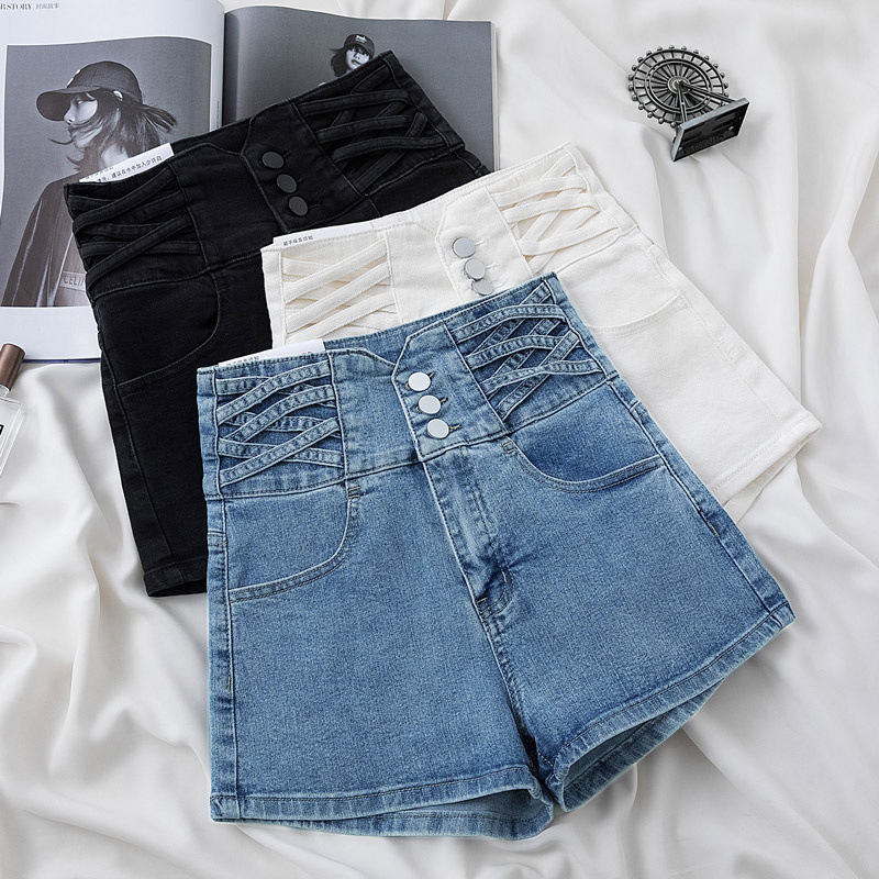 女性のための超ハイウエスト多用途デニムショートパンツ夏 2025 新しいインターネット有名人 A ライン痩身弾性 3 点ホットパンツイン